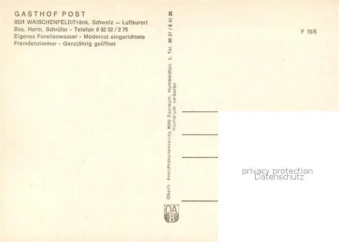 Waischenfeld Gasthof zur Post Gaststube Bar Angler Waischenfeld postalisch nicht gelaufen nach 1965 Erhaltung siehe scans [WerneD78] WernPID7