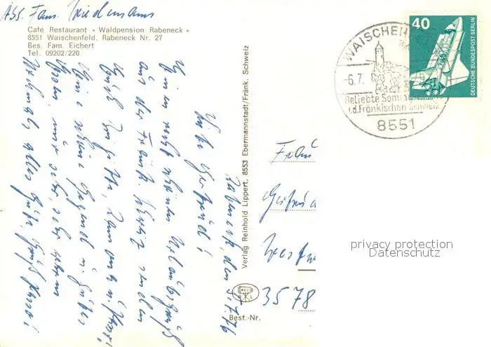 Waischenfeld Waldpension Rabeneck Café Restaurant Burg Tal der Wiesent Waischenfeld postalisch gelaufen 1976 Erhaltung siehe scans [FriedD77] Frierer