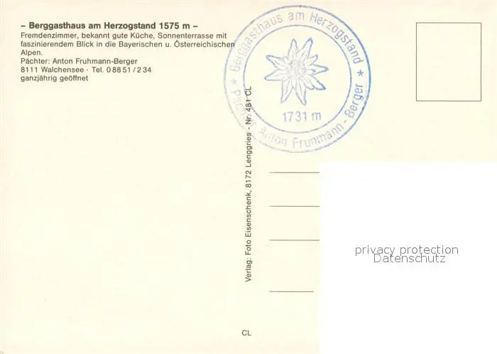 Walchensee Berggasthaus am Herzogstand Walchensee postalisch nicht gelaufen nach 1965 Erhaltung siehe scans [WerneD78] WernPID7