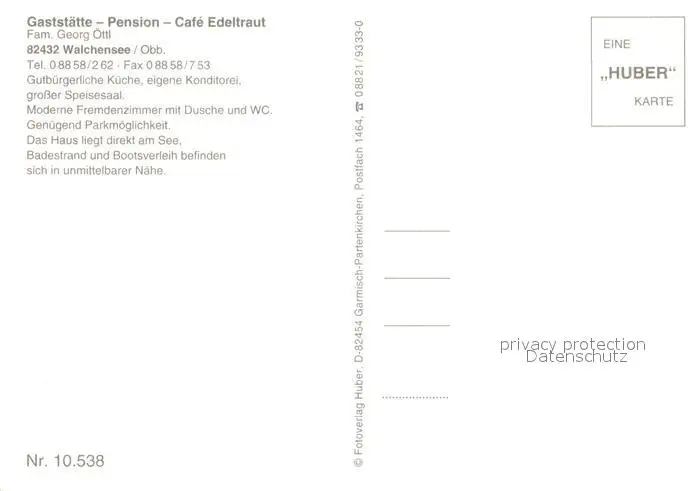Walchensee Gasthaus Pension Edeltraut Walchensee postalisch nicht gelaufen nach 1965 Erhaltung siehe scans [LiesaD40] LiesID40