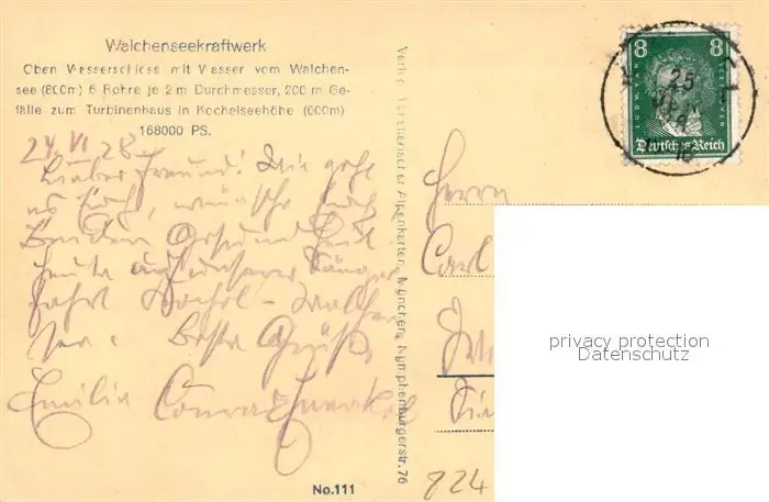 Walchensee Kraftwerk Turbinenhaus Walchensee postalisch gelaufen 1928 Erhaltung siehe scans [KathaD81] Kathoren