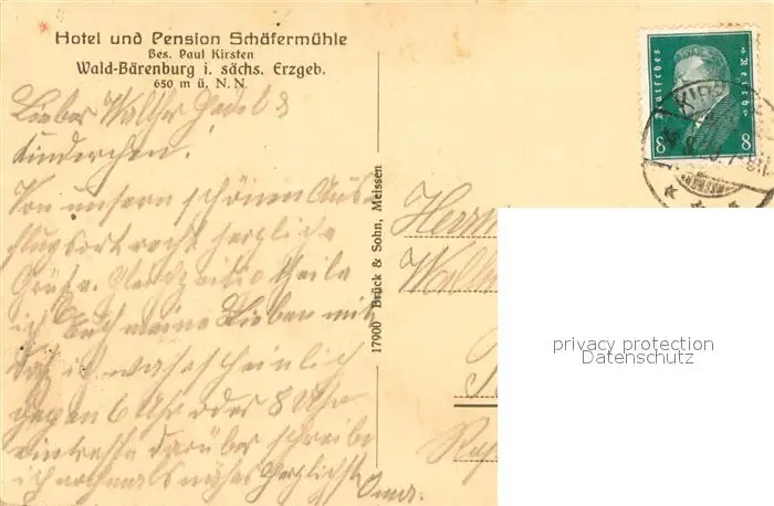 Waldbaerenburg Hotel Schaefermuehle Waldbaerenburg postalisch gelaufen 1929 Erhaltung siehe scans [WerneD78] WernPID7