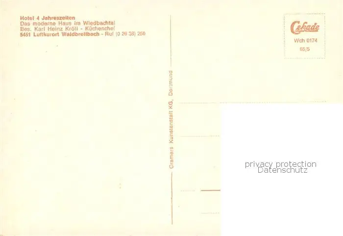 Waldbreitbach_Wied Hotel 4 Jahreszeiten Gaststube Waldbreitbach Wied postalisch nicht gelaufen 1921-1965 Erhaltung siehe scans [FriedD77] Frierer