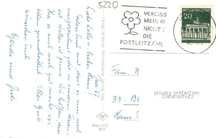 Waldbroel Automobile Panorama Waldbroel postalisch gelaufen 1967 Fliegeraufnahme Erhaltung siehe scans [FriedD77] Fliegeraufnahme Frierer