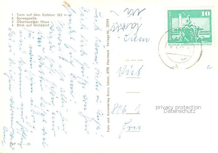 Walddorf_Sachsen Turm auf dem Kottmar Spreequelle Oberlausitzer Haus Ortsansicht Walddorf Sachsen postalisch gelaufen nach 1965 Erhaltung siehe scans [FriedD77] Frierer