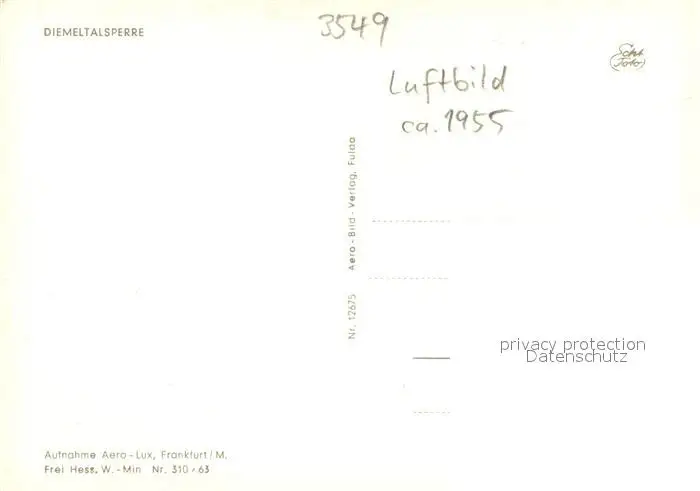 Waldeck_Edersee Diemeltalsperre Waldeck Edersee postalisch nicht gelaufen 1955 Fliegeraufnahme Erhaltung siehe scans [WerneD78] Fliegeraufnahme WernPID7