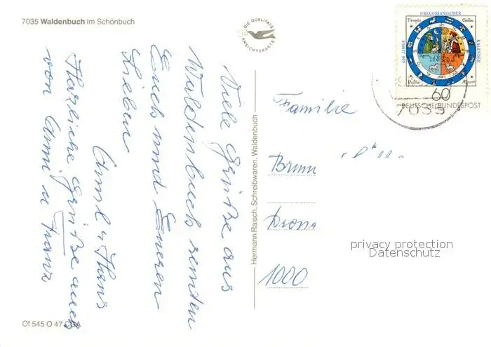 Waldenbuch Ortsansicht mit Kirche Waldenbuch postalisch gelaufen 1982 Erhaltung siehe scans [FriedD77] Frierer