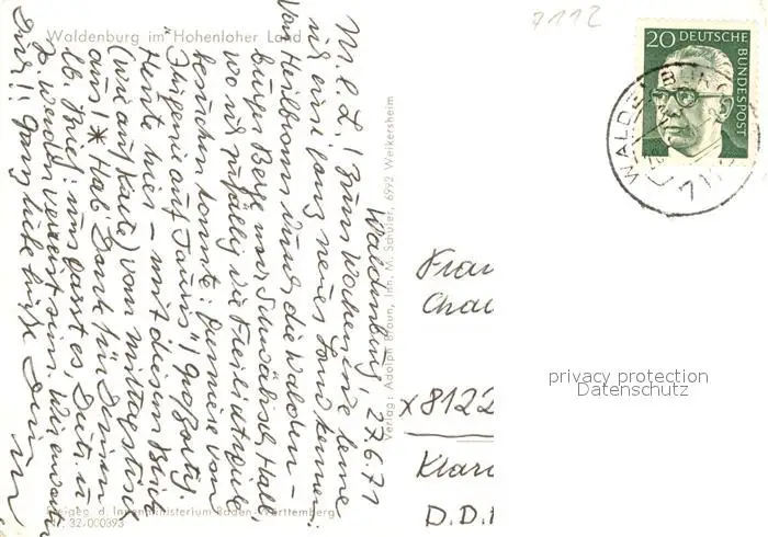 Waldenburg_Wuerttemberg Hohenloher Land Fliegeraufnahme Waldenburg Wuerttemberg postalisch gelaufen 1971 Erhaltung siehe scans [FriedD77] Frierer