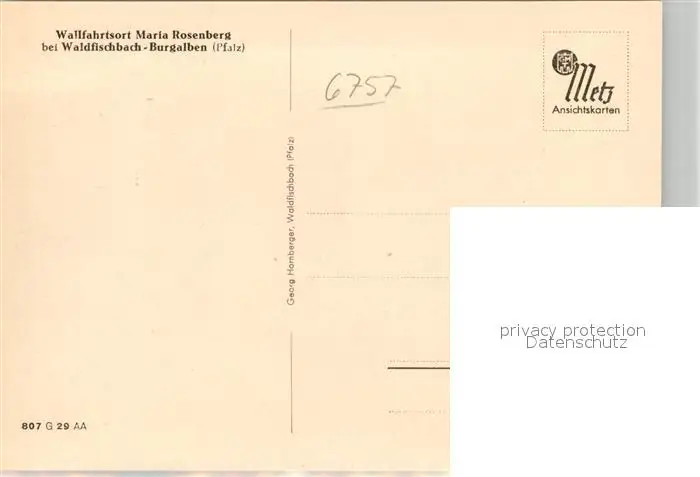 Waldfischbach-Burgalben Landschaftspanorama mit Wallfahrtsort Maria Rosenberg Fliegeraufnahme Waldfischbach-Burgalben postalisch nicht gelaufen 1921-1965 Erhaltung siehe scans [FriedD77] Frierer