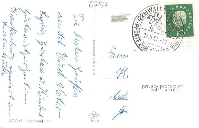 Waldfischbach-Burgalben Rathausplatz Kirche Galgenfelsen Ecke Hoeh Welschstrasse Stadtpanorama Wappen Waldfischbach-Burgalben postalisch gelaufen 1961 Erhaltung siehe scans [FriedD77] Frierer