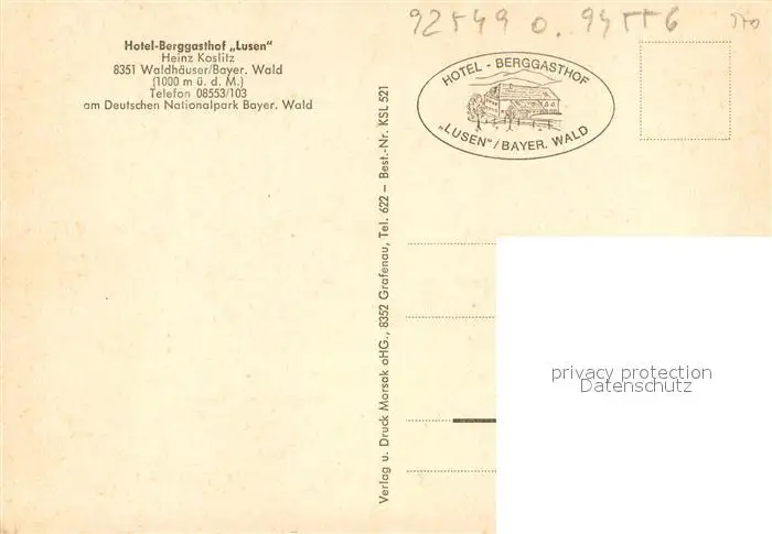 Waldhaeuser_Neuschoenau Hotel Berggasthof Lusen Gastraeume Waldhaeuser Neuschoenau postalisch nicht gelaufen nach 1965 Erhaltung siehe scans [WerneD78] WernPID7