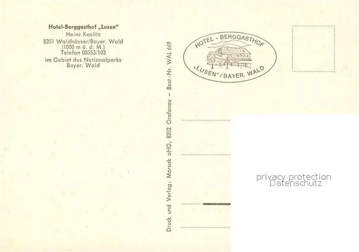 Waldhaeuser_Neuschoenau Hotel Berggasthof Lusen Wegekreuz Terrasse Gastraum Seepartie Waldhaeuser Neuschoenau postalisch nicht gelaufen nach 1965 Erhaltung siehe scans [FriedD77] Frierer