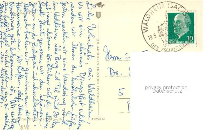 Waldheim Sachsen Kategorie Alte Ansichtskarten Postkarten bx52318 Waldheim_Sachsen Ortsmotiv mit Kirche Waldheim Sachsen postalisch gelaufen 1964 Erhaltung siehe scans [FriedD77]