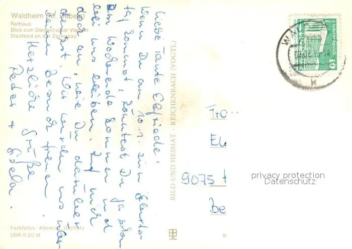 Waldheim_Sachsen Rathaus Diedenhainer Viadukt Stadtbad an der Zschopau Waldheim Sachsen postalisch gelaufen 1986 Erhaltung siehe scans [FriedD77] Frierer