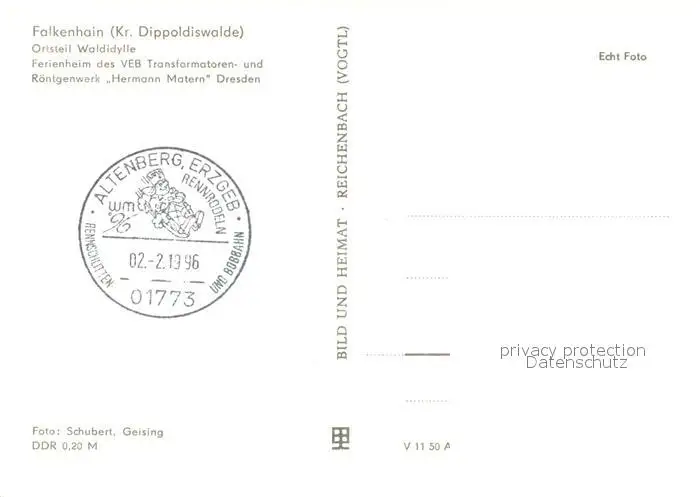 Waldidylle Ferienheim des VEB Transformatoren- und Roentgenwerk Hermann Matern Dresden Waldidylle postalisch nicht gelaufen 1983 Erhaltung siehe scans [FriedD77] Frierer