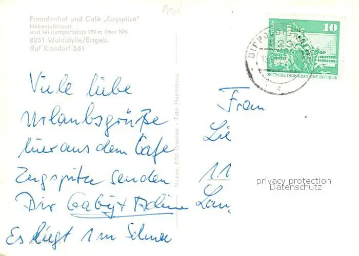 Waldidylle Fremdenhof Café Zugspitze Waldidylle postalisch gelaufen 1977 Erhaltung siehe scans [LiesaD40] LiesID40