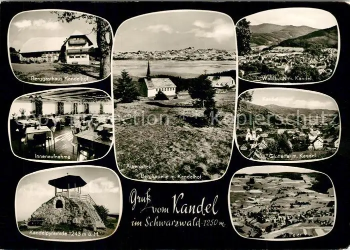 AK / Ansichtskarte Waldkirch_Breisgau Berggasthaus Kandel Bergkapelle Panorama Innenaufnahme Glottertal Kandelpyramide St Peter Waldkirch Breisgau