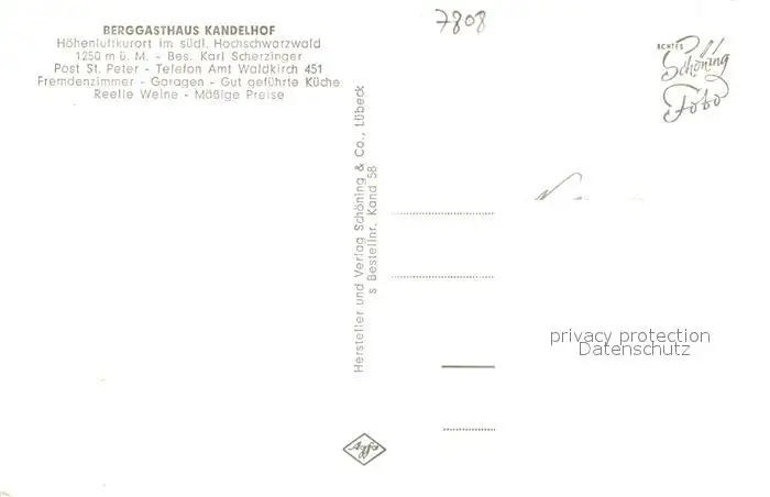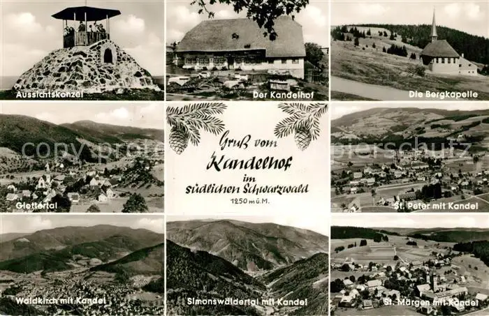 Waldkirch_Breisgau Berggasthaus Kandelhof Aussichtskanzel Bergkapelle Glottertal St Peter Simonswaeldertal St Maergen Schwarwald Fliegeraufnahme Waldkirch Breisgau postalisch nicht gelaufen nach 1965 Erhaltung siehe scans [FriedD77] Frierer