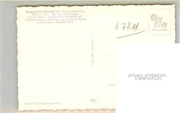Waldkirch_Breisgau Berggasthaus Kandelhof Waldkirch Breisgau postalisch nicht gelaufen 1921-1965 Erhaltung siehe scans [WerneD78] WernPID7