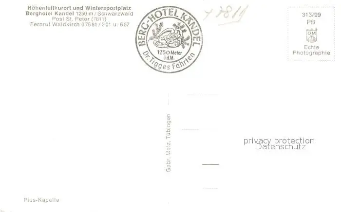 Waldkirch_Breisgau Berghotel Kandel Kapelle Waldkirch Breisgau postalisch nicht gelaufen 1921-1965 Erhaltung siehe scans [WerneD78] WernPID7