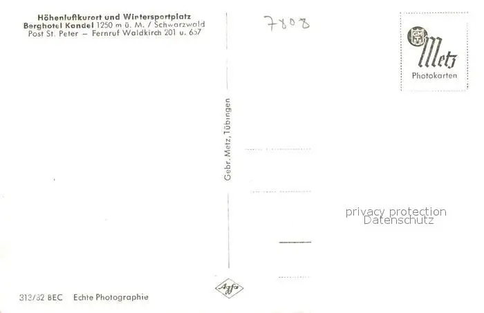 Waldkirch_Breisgau Berghotel Kandel Landschaftspanorama Alpenkette Waldkirch Breisgau postalisch nicht gelaufen 1921-1965 Erhaltung siehe scans [FriedD77] Frierer