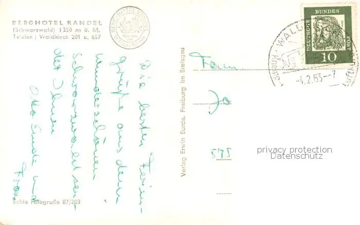 Waldkirch_Breisgau Berghotel Kandel Winterpartie Waldkirch Breisgau postalisch gelaufen 1963 Erhaltung siehe scans [FriedD77] Frierer