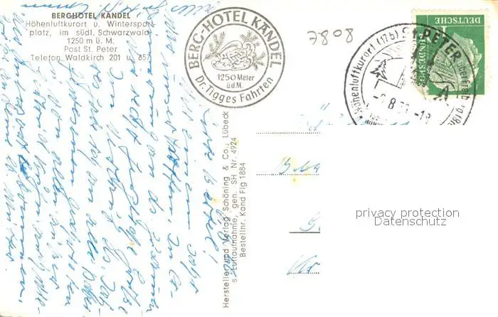 Waldkirch_Breisgau Berghotel auf dem Kandel Schwarzwald Fliegeraufnahme Waldkirch Breisgau postalisch gelaufen 1956 Erhaltung siehe scans [FriedD77] Frierer