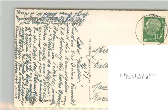 Waldkirch_Breisgau Gasthaus Pension Felsenkeller Waldkirch Breisgau postalisch gelaufen 1957 Erhaltung siehe scans [FriedD77] Frierer