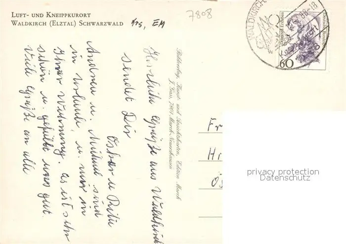 Waldkirch_Breisgau Luft- und Kneippkurort im Schwarzwald Waldkirch Breisgau postalisch gelaufen 1988 Erhaltung siehe scans [FriedD77] Frierer