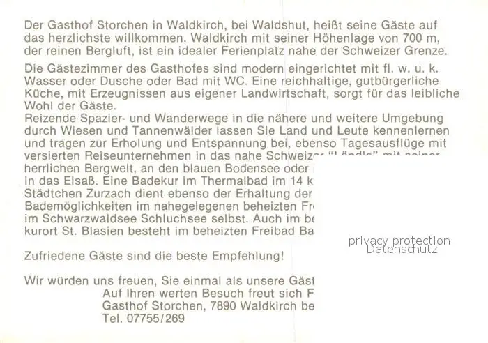 Waldkirch_Waldshut-Tiengen Gasthof Storchen Gaststube Storchennest Blick ins Tal Waldkirch postalisch nicht gelaufen nach 1965 Werbekarte (keine Postkarte) Erhaltung siehe scans [FriedD77] Werbekarte (keine Postkarte) Frierer