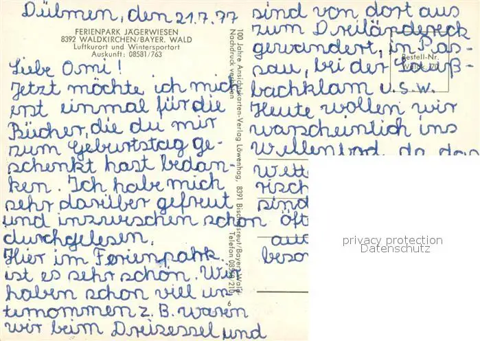 Waldkirchen_Niederbayern Ferienpark Jaegerwiesen Gastraeume Ortsmotiv Waldkirchen Niederbayern postalisch nicht gelaufen 1977 Erhaltung siehe scans [WerneD78] WernPID7