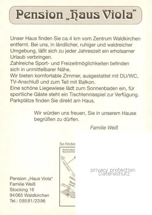 Waldkirchen_Niederbayern Pension Haus Viola Gaststube Zimmer Waldkirchen Niederbayern postalisch nicht gelaufen nach 1965 Werbekarte (keine Postkarte) Erhaltung siehe scans [WerneD78] Werbekarte (keine Postkarte) WernPID7