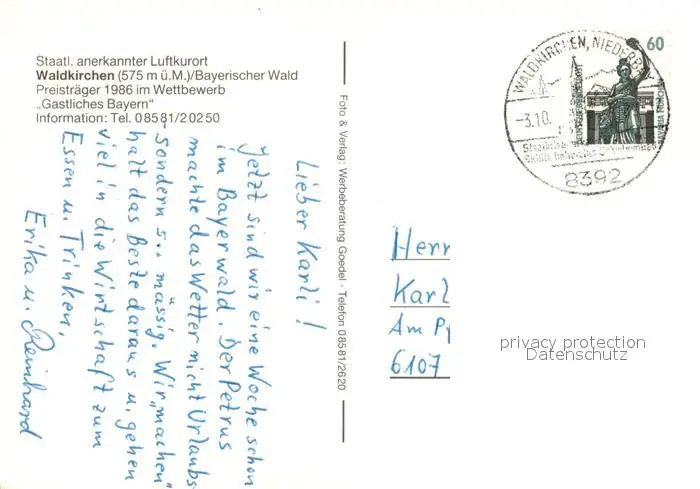 Waldkirchen_Niederbayern Stadtansichten Waldkirchen Niederbayern postalisch gelaufen nach 1965 Erhaltung siehe scans [KathaD81] Kathoren