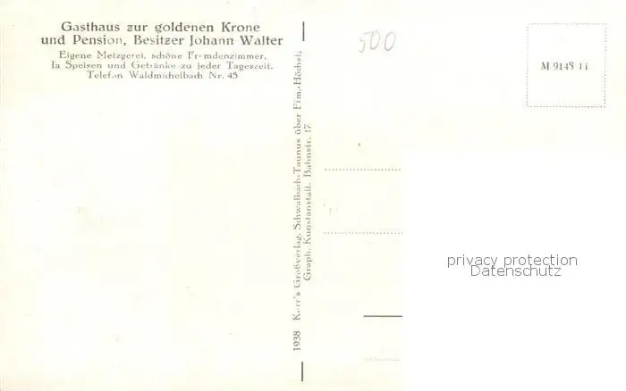 Waldmichelbach Unter-Schoenmattenweg u. Gasthaus zur goldenen Krone Waldmichelbach postalisch nicht gelaufen 1921-1965 Erhaltung siehe scans [LiesaD40] LiesID40