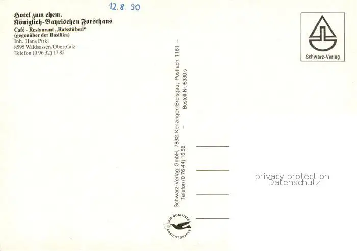Waldsassen Hotel zum ehem Koeniglich Bayrischen Forsthaus Terrasse Gaststube Waldsassen postalisch nicht gelaufen 1990 Erhaltung siehe scans [WerneD78] WernPID7