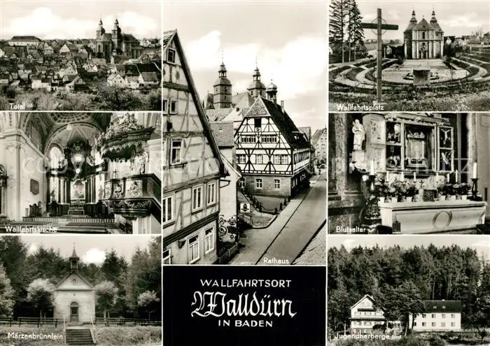 Wallduern Rathaus Wallfahrtskirche Jugendherberge Wallduern postalisch gelaufen 1972 Erhaltung siehe scans [NatalD47] NataID47