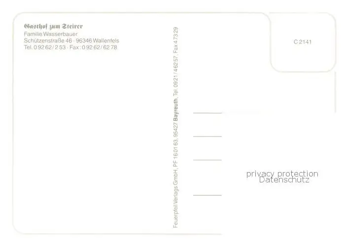 Wallenfels_Oberfranken Gasthof zum Steirer Gastraeume Wallenfels_Oberfranken postalisch nicht gelaufen nach 1965 Erhaltung siehe scans [FriedD77] Frierer