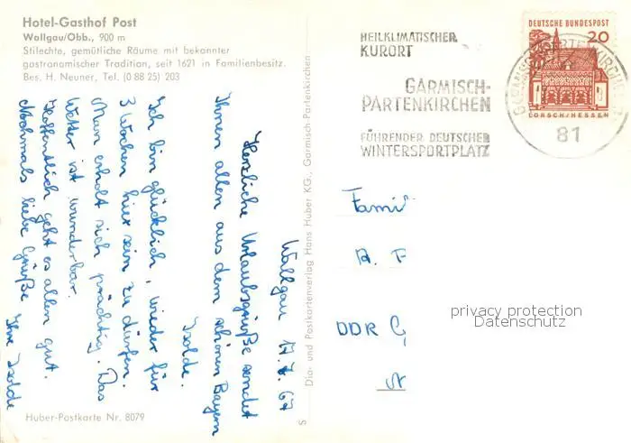Wallgau Hotel Gasthof Post Wallgau postalisch gelaufen 1967 Erhaltung siehe scans [WerneD78] WernPID7