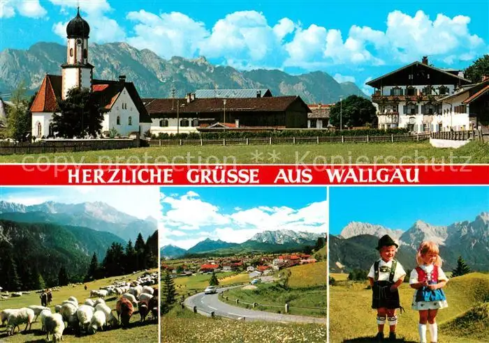 AK / Ansichtskarte Wallgau Kirche Schafherde Panorama Kinder Wallgau