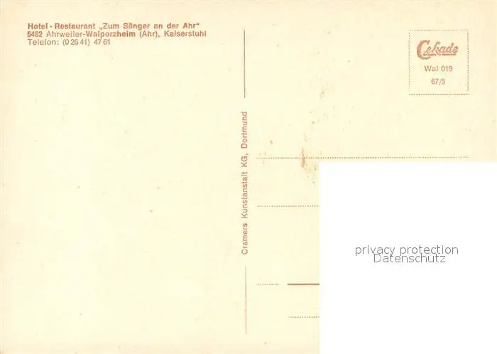 Walporzheim Hotel Restaurant Zum Saenger an der Ahr Walporzheim postalisch nicht gelaufen nach 1965 Erhaltung siehe scans [WerneD78] WernPID7