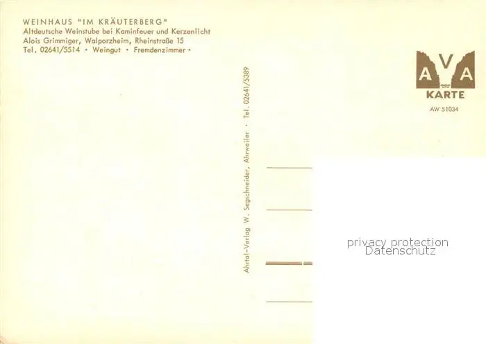 Walporzheim Weinhaus Kraeuterberg Ahrtal Walporzheim postalisch nicht gelaufen nach 1965 Erhaltung siehe scans [LiesaD40] LiesID40