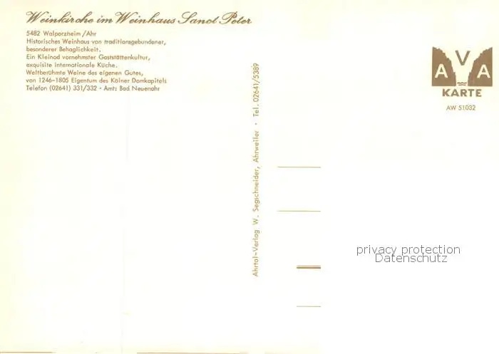 Walporzheim Weinkirche im Weinhaus Sanct Peter Walporzheim postalisch nicht gelaufen 1921-1965 Erhaltung siehe scans [FriedD77] Frierer