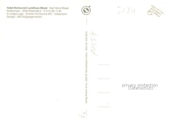 Walsrode_Lueneburger_Heide Kategorie Alte Ansichtskarten Postkarten bx92881 Walsrode_Lueneburger_Heide Hotel Restaurant Landhaus Meyer Walsrode_Lueneburger_Heide postalisch nicht gelaufen nach 1965 Erhaltung siehe scans [WerneD78]