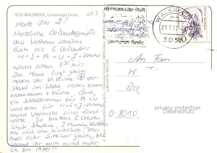 Walsrode_Lueneburger_Heide Teilansichten Wasserspiele Alte Scheune Heidelandschaft Papagei Walsrode_Lueneburger_Heide postalisch gelaufen 1992 Erhaltung siehe scans [FriedD77] Frierer