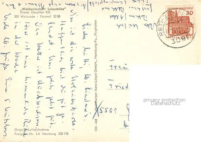 Walsrode_Lueneburger_Heide Waldwirtschaft Luisenhoehe Fliegeraufnahme Walsrode_Lueneburger_Heide postalisch gelaufen nach 1965 Erhaltung siehe scans [FriedD77] Frierer