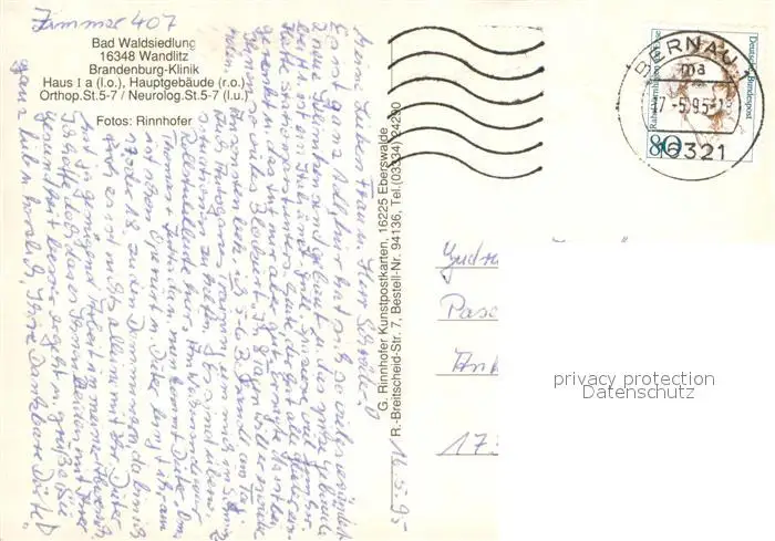 Wandlitz Bad Waldsiedlung Brandenburg-Klinik Wandlitz postalisch gelaufen 1995 Erhaltung siehe scans [LiesaD40] LiesID40