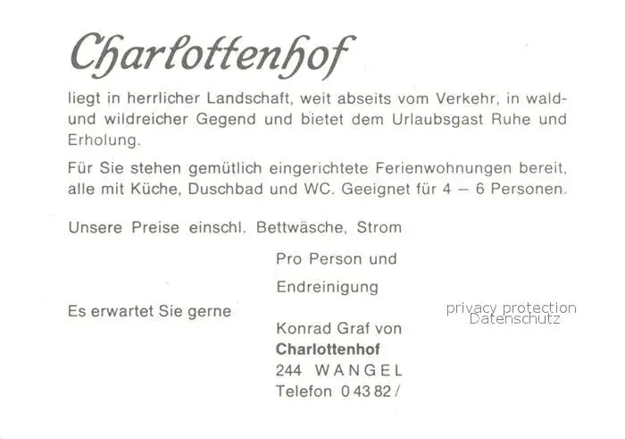 Wangels Charlottenhof Wangels postalisch nicht gelaufen nach 1965 Werbekarte (keine Postkarte) Erhaltung siehe scans [FriedD77] Werbekarte (keine Postkarte) Frierer