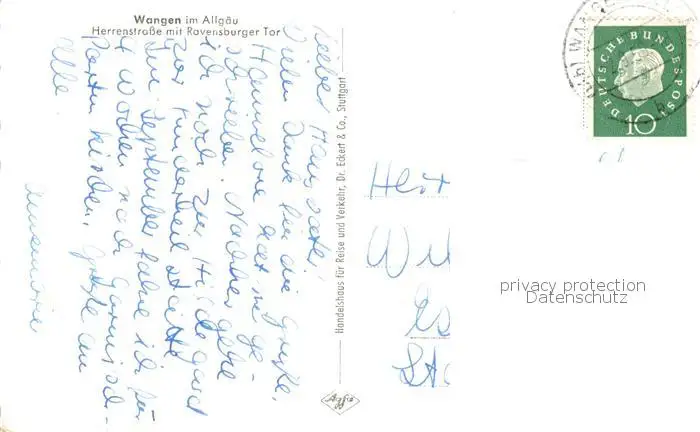 Wangen_Allgaeu Herrenstrasse mit Ravensburger Tor Wangen Allgaeu postalisch gelaufen 1921-1965 Erhaltung siehe scans [WerneD78] WernPID7