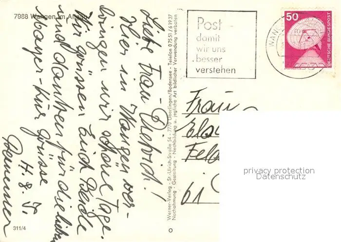 Wangen_Allgaeu RAthaus Kirche Brunnen Panorama Wangen Allgaeu postalisch gelaufen 1981 Erhaltung siehe scans [KathaD81] Kathoren