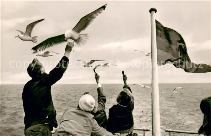 AK / Ansichtskarte Wangerooge_Nordseebad Moewenfuetterung waehrend der ueberfahrt Wangerooge_Nordseebad